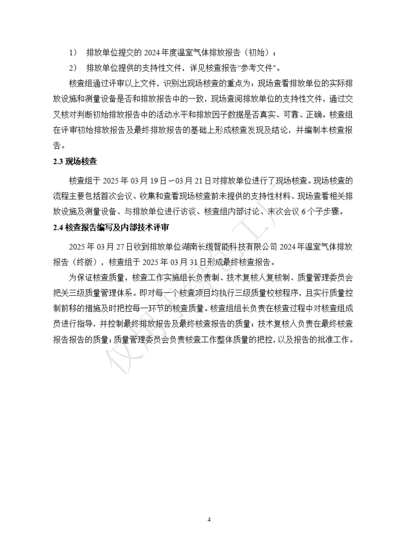 湖南長纜智能科技有限公司2024年度溫室氣體排放核查報告信息公示