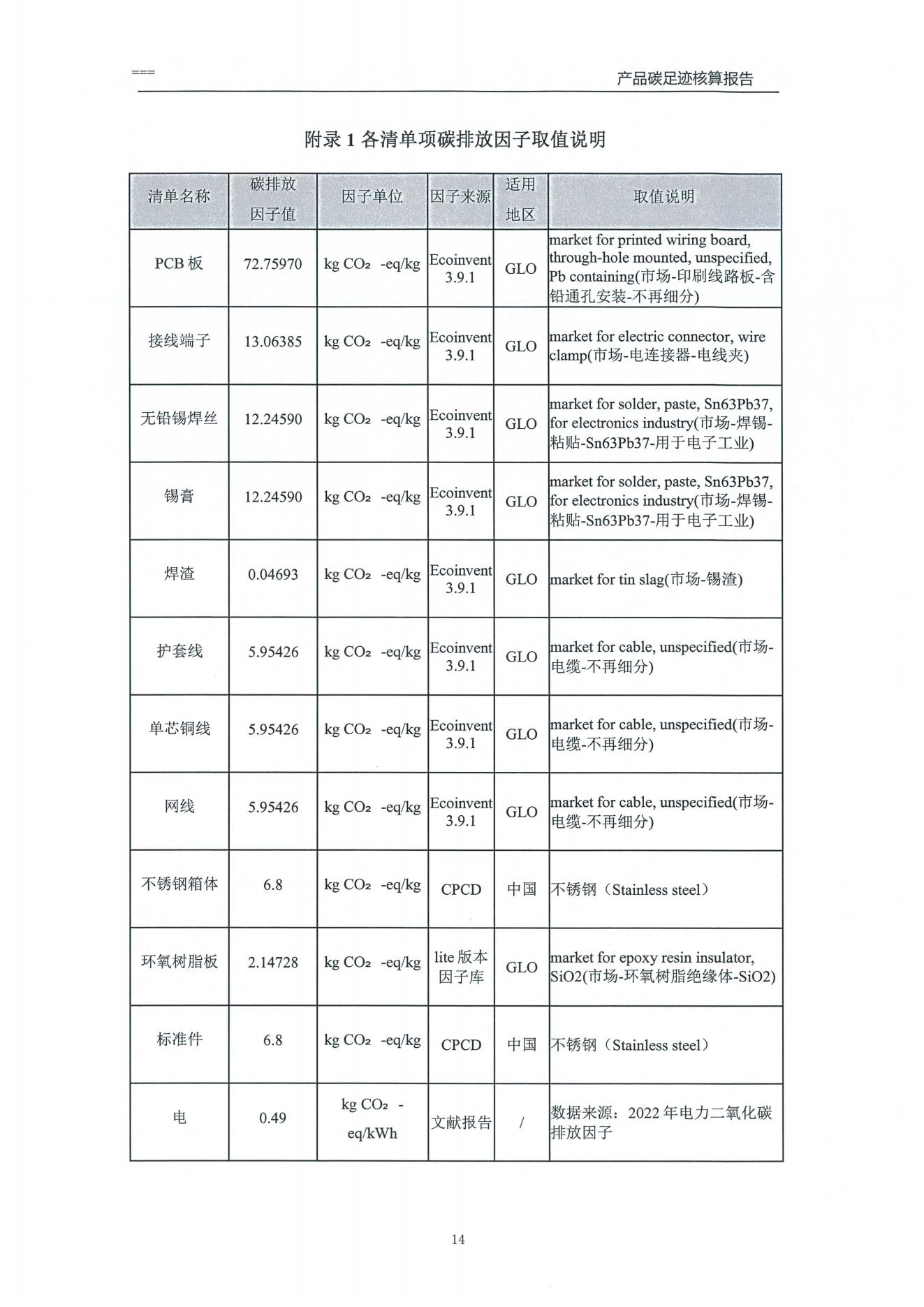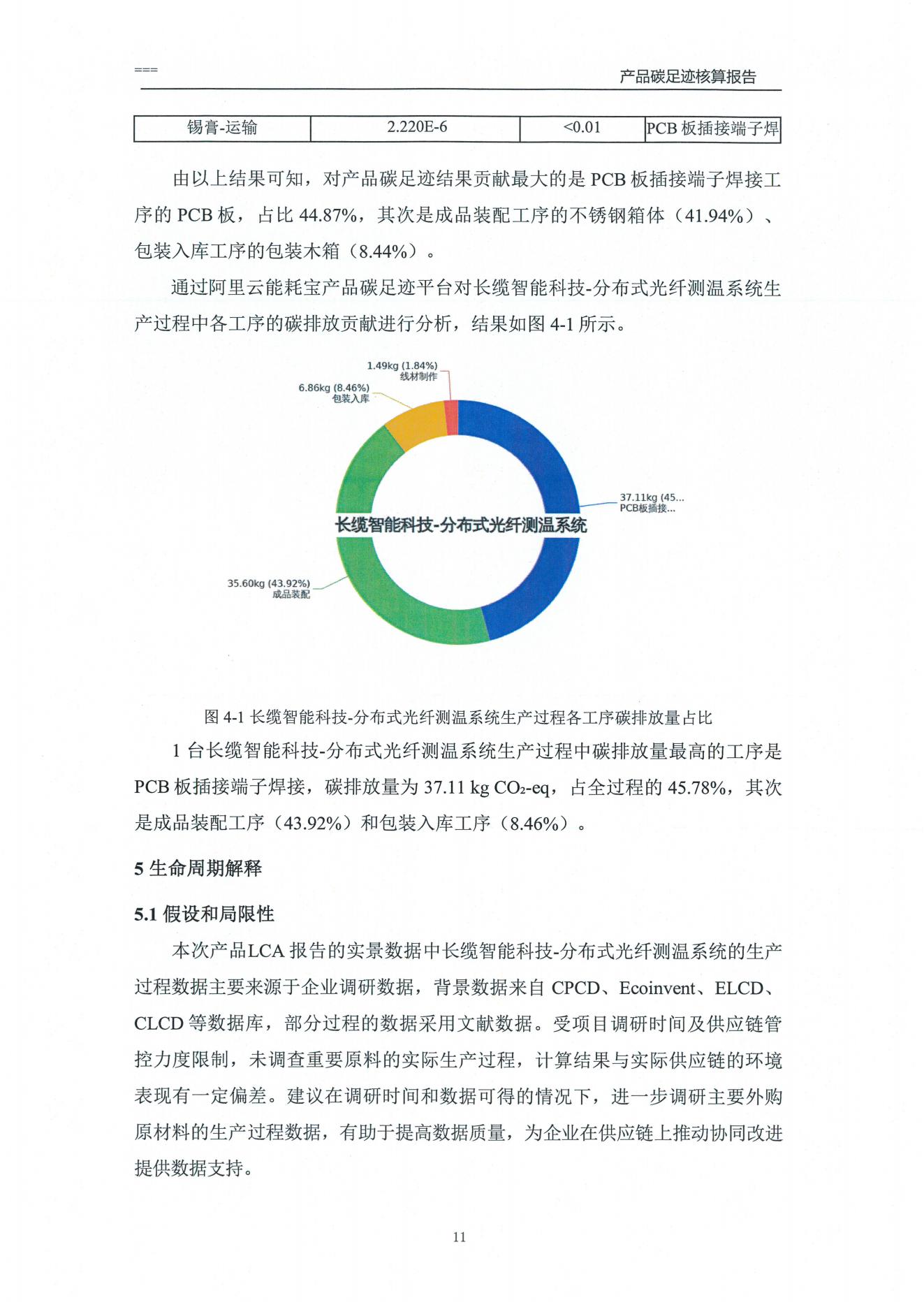 湖南長纜智能科技有限公司產(chǎn)品碳足跡研究報(bào)告信息公示