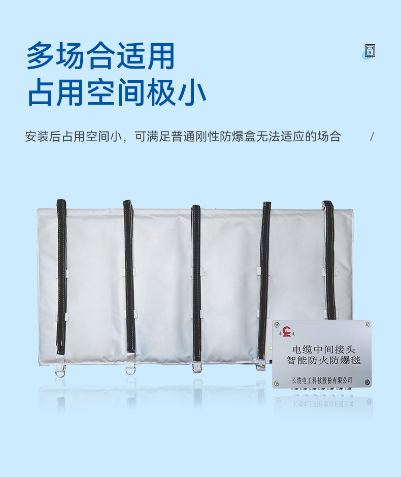 ? 適用性強(qiáng):一種規(guī)格即可滿足3*400mm%及以下10KV中間接頭的防護(hù)應(yīng)用(防爆長1.3m,寬1m,以長度方向進(jìn)行卷包)