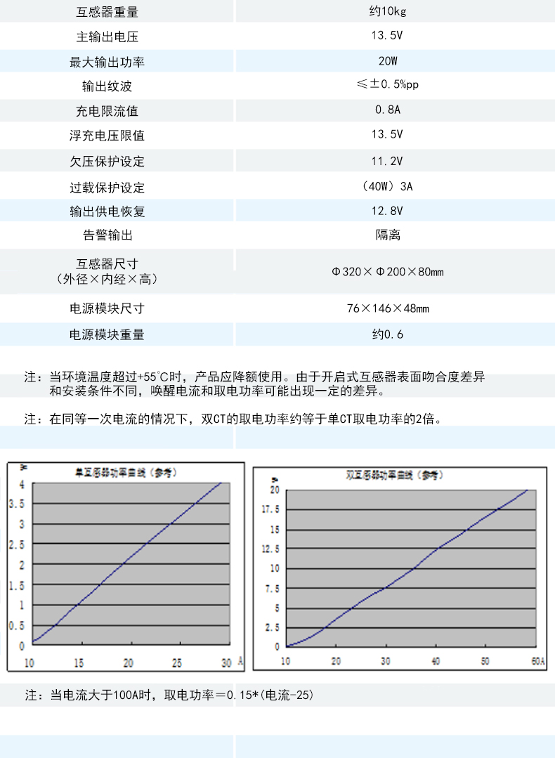 CT-20W-12是我公司針對電纜系統(tǒng)等環(huán)境中需要小功率電源的應用下,開發(fā)的一款帶蓄電池充放電管理的高穩(wěn)定性電流感應電源,其負載輸出電壓規(guī)格為12V,額定輸出功率為20W,充電電壓最大為13.5V,充電限流值為0.8A,充電最大功率為20W,支持取電的最大導線外徑為200mm。該系列電流感應電源采用高頻隔離DC/DC變換技術以及蓄電池充放電管理,輔以電源狀態(tài)監(jiān)視,配套專用取能互感器,體積小巧,電能轉(zhuǎn)化效率高,滿足了電網(wǎng)大電流沖擊和負載跳變等多種惡劣情況下的安全供電要求。
