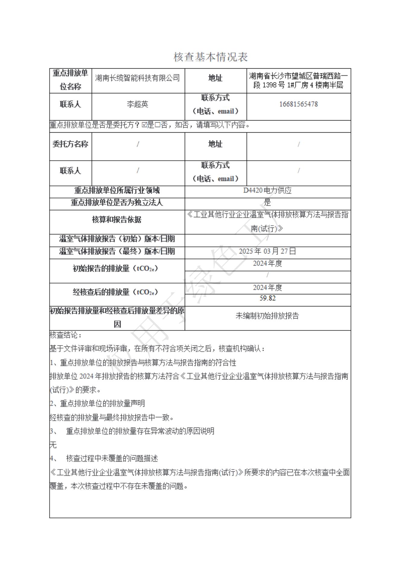 湖南長纜智能科技有限公司2024年度溫室氣體排放核查報告信息公示