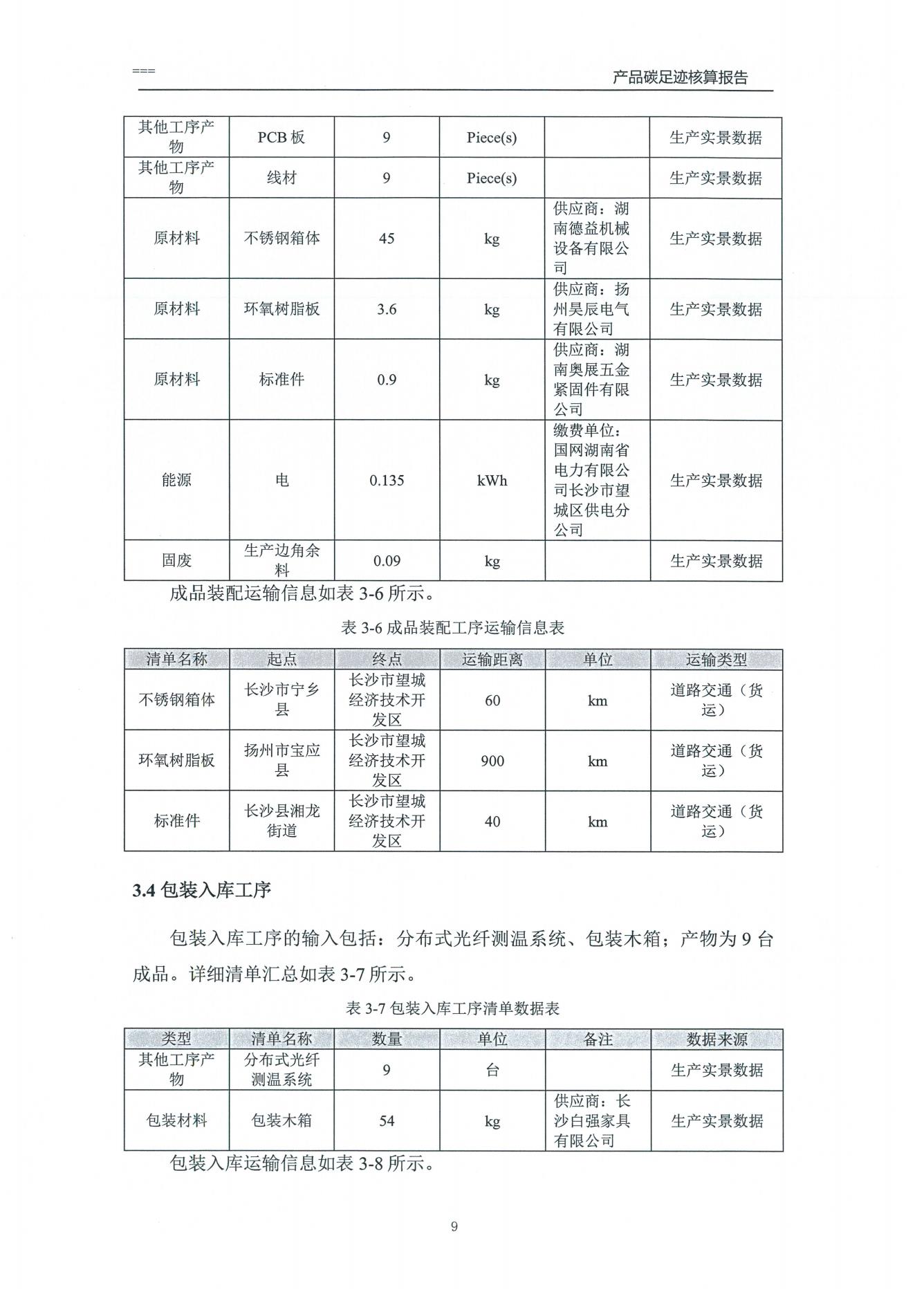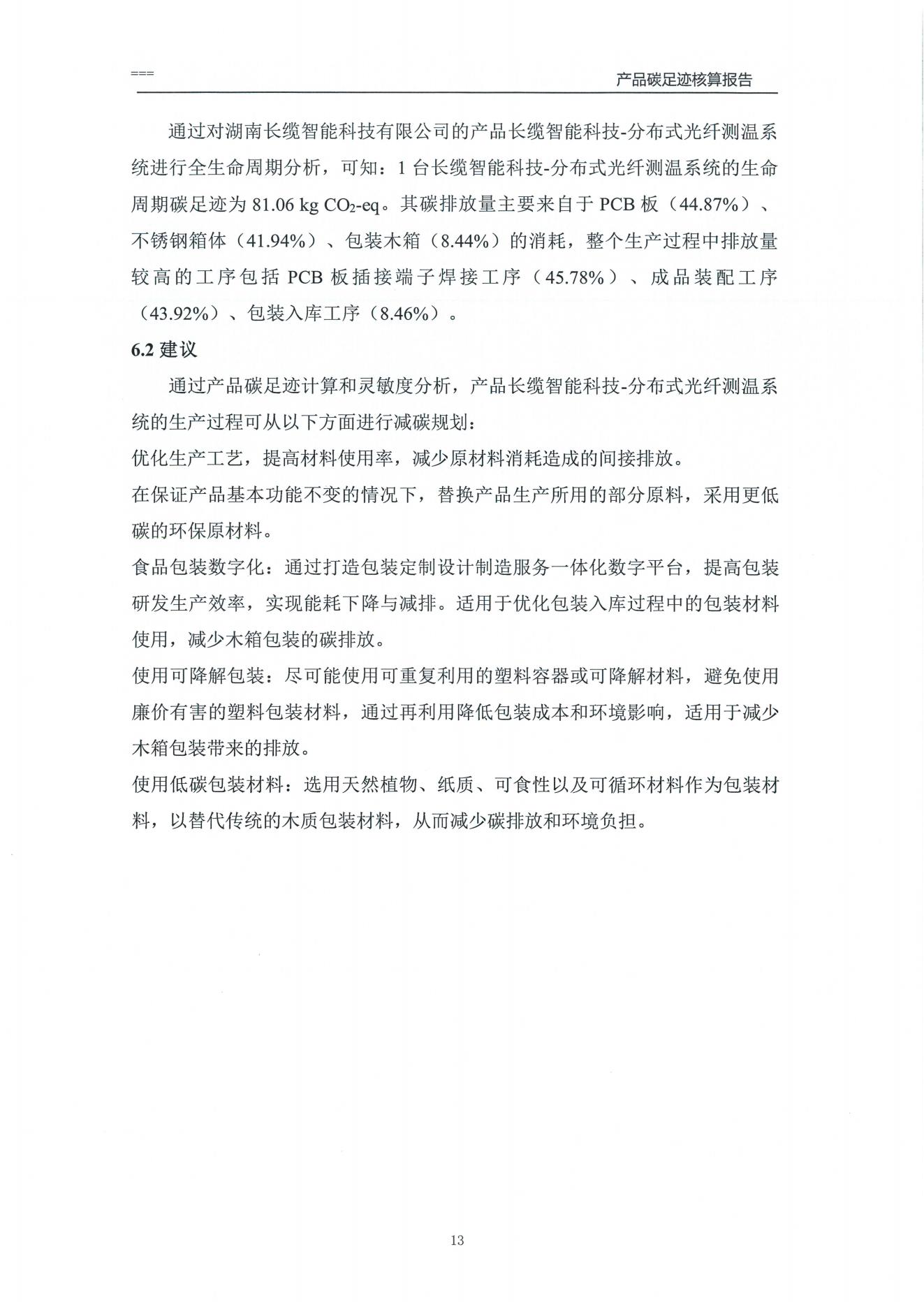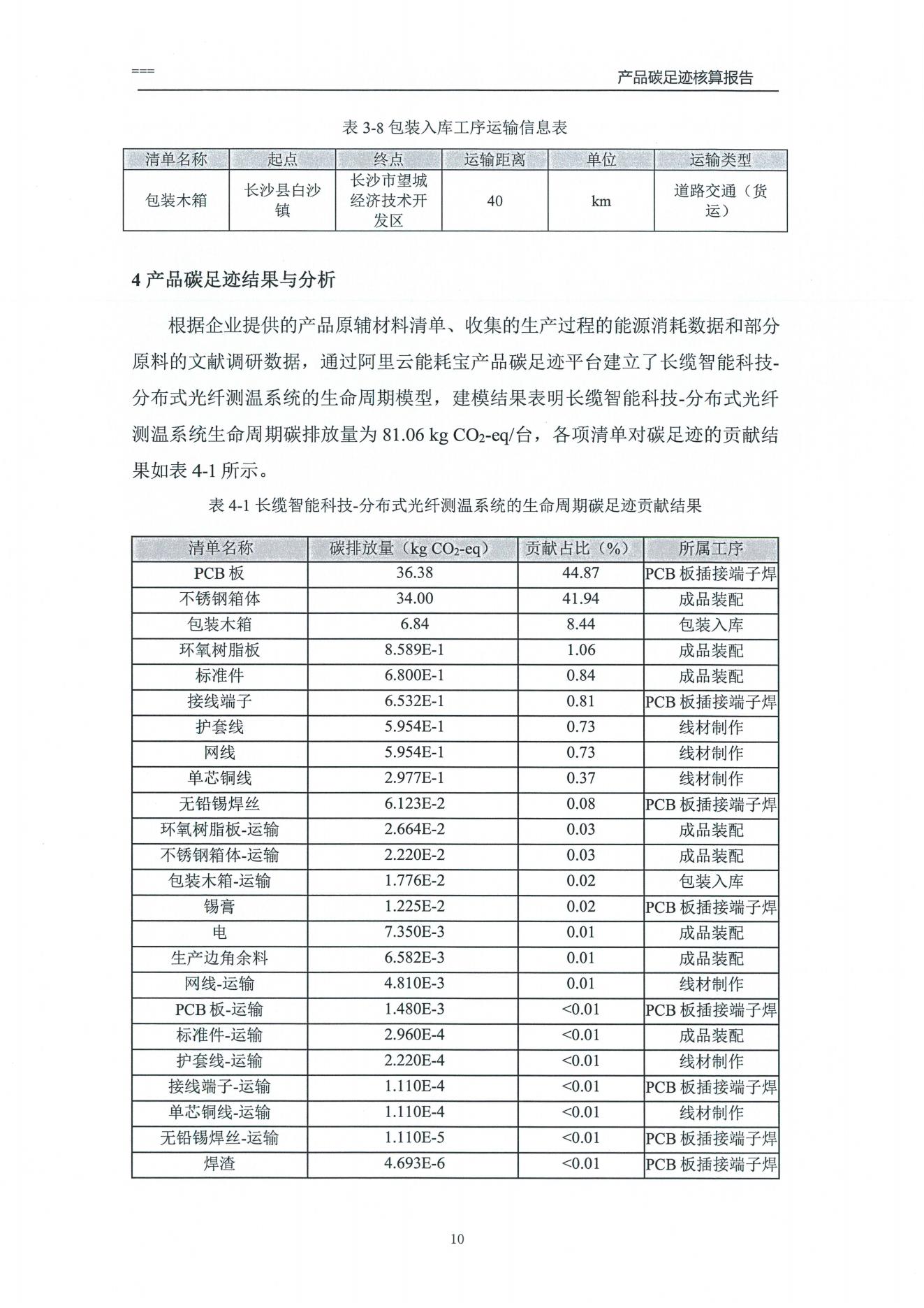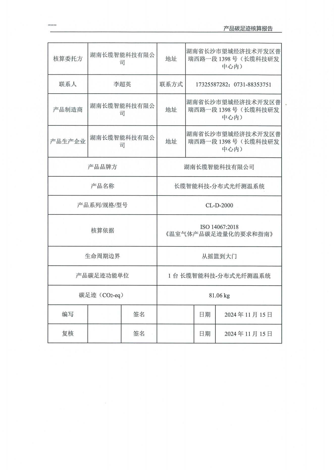 湖南長纜智能科技有限公司產(chǎn)品碳足跡研究報(bào)告信息公示