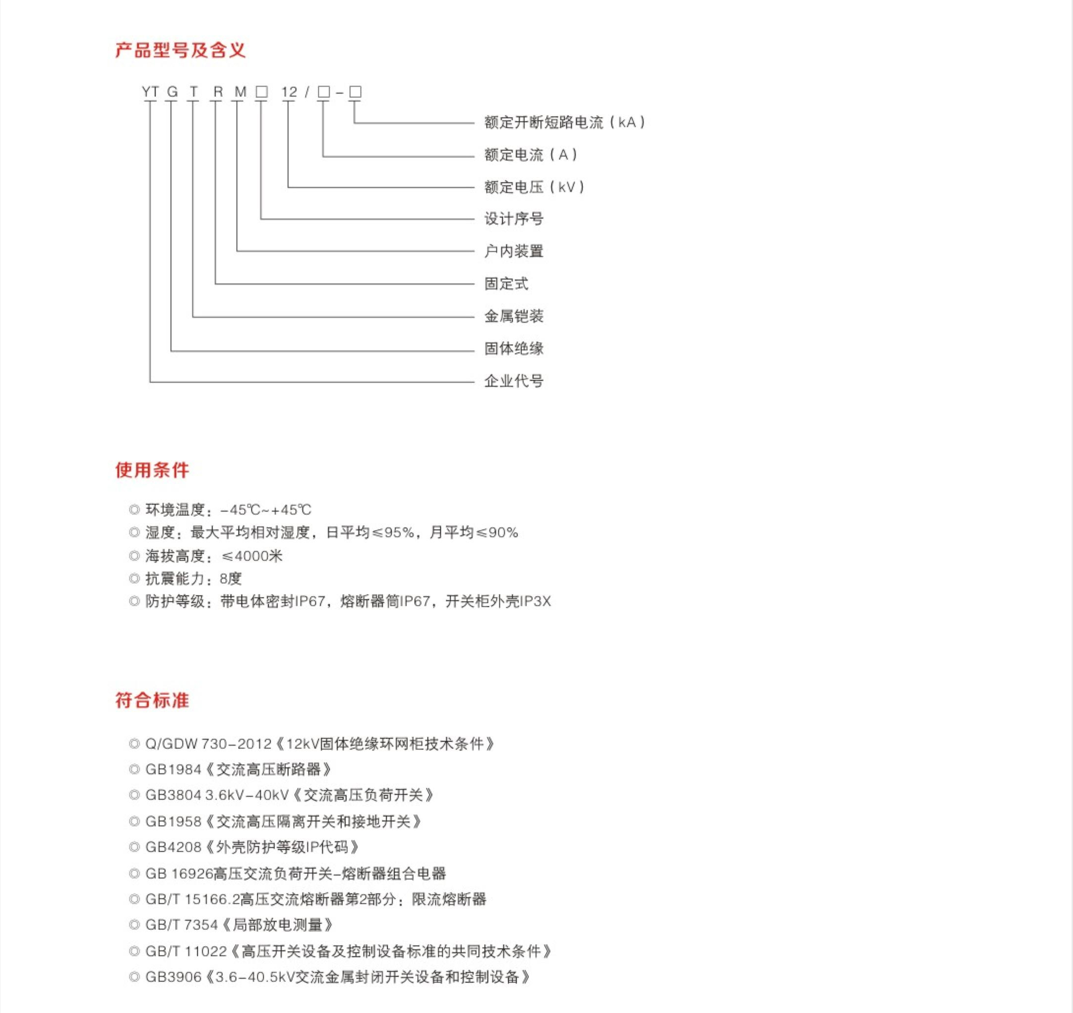 YTG(TRM)-12固體絕緣交流金屬封閉開關(guān)設(shè)備