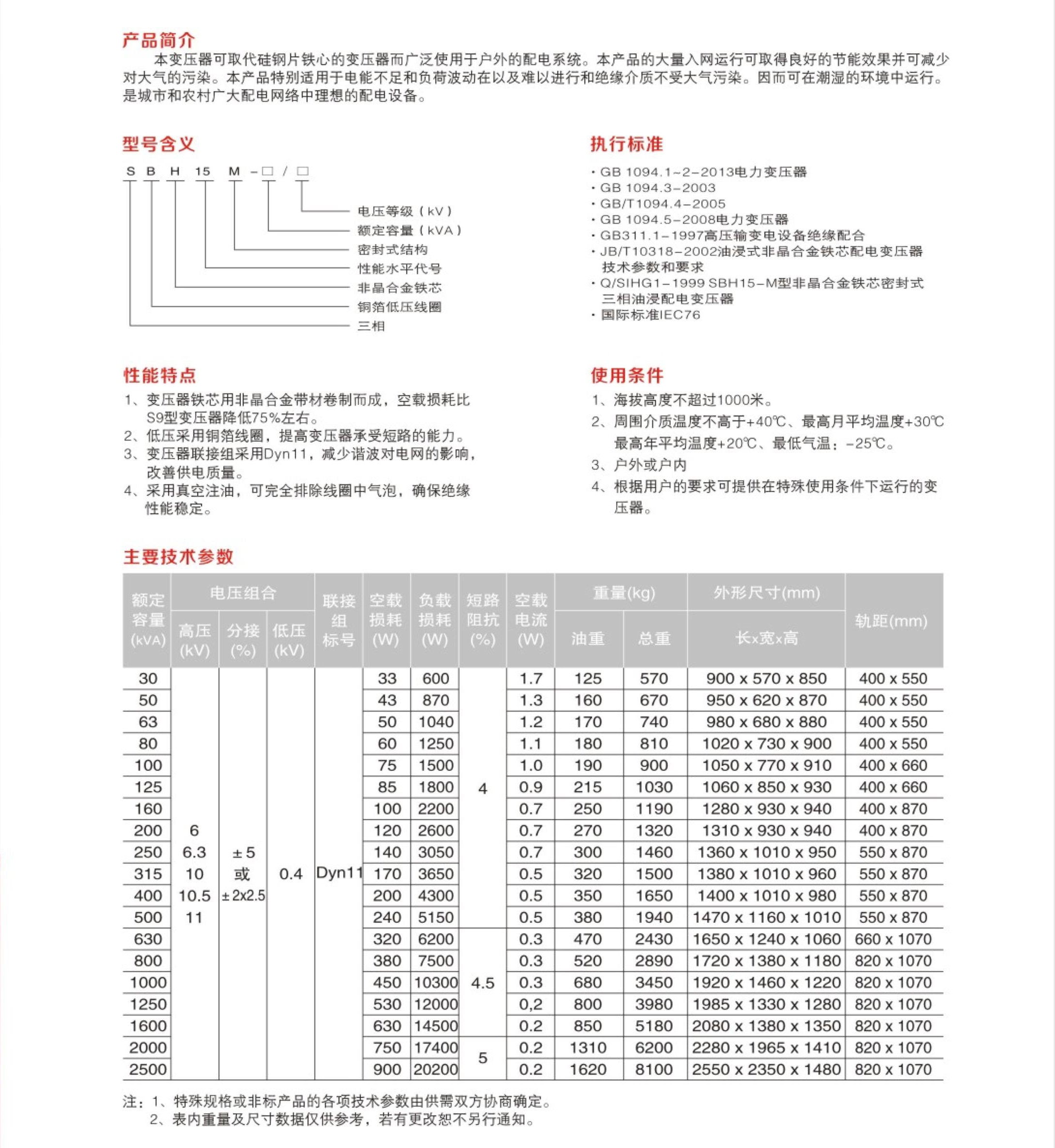SBH1 5-M-1000/10非晶合金配電變壓器