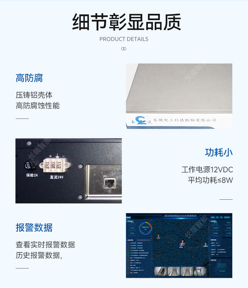 ? 主機自帶觸摸屏操作,可在觸摸屏中,自檢,查看實時報警數(shù)據(jù),歷史報警數(shù)據(jù),可離線狀態(tài)下,獨立運行并報警,在3公里位置能達到士0.5的溫度誤差;