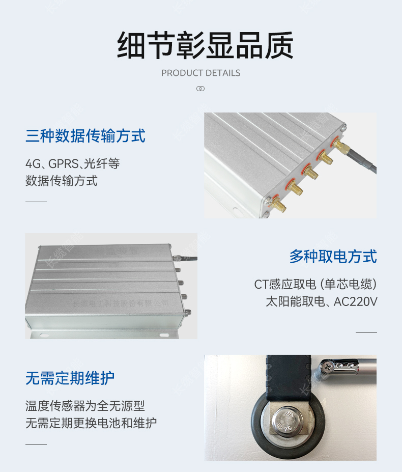 ? 無源溫度采集:溫度傳感器為全無源型,無需定期更換電池和維護(hù)。
